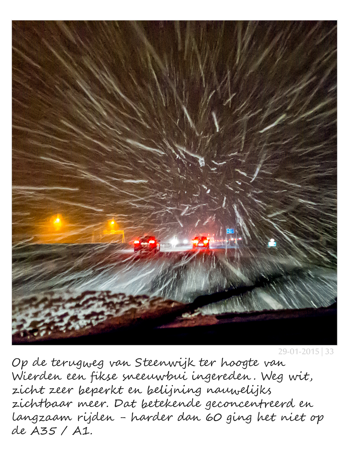 Er waren dagen dat ik in het donker van huis ging en in het donker weer thuiskwam. En tussendoor weinig fotomomenten. Soms had ik slechts 1 foto (snel gemaakt vanuit een rijdende auto bijvoorbeeld), vaak gelukkig meerdere, zodat ik nog iets te kiezen had.