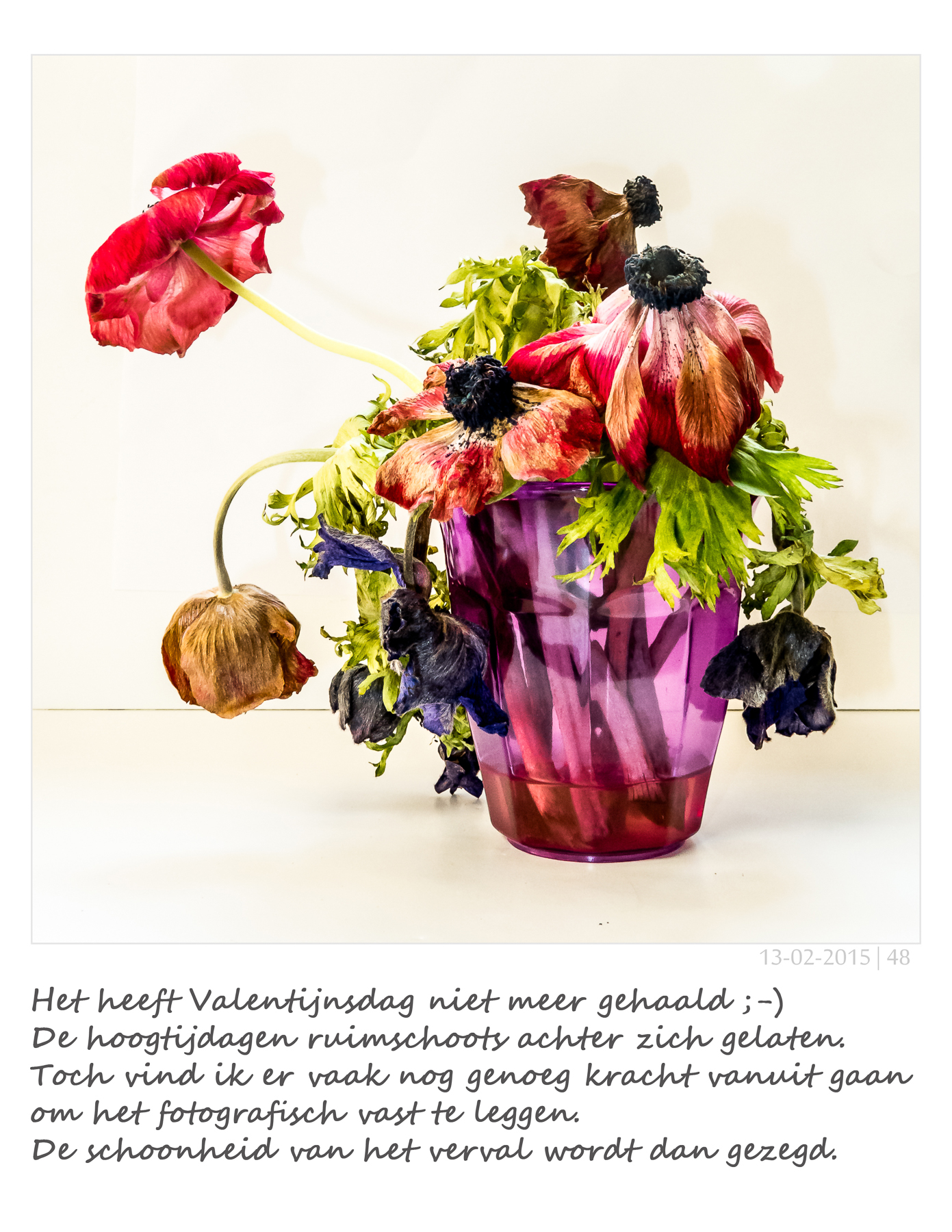 In december 2014 sloot de organisatie waar ik ruim 20 jaar had gewerkt. Geen leuke gebeurtenis en op dat moment vooralsnog ook nog geen vervanging van die werkzaamheden. De klussenlijst is lang, dus vervelen is geen optie. En het leek mij wel een goed idee om daarbij ook een soort fotoproject te gaan doen.