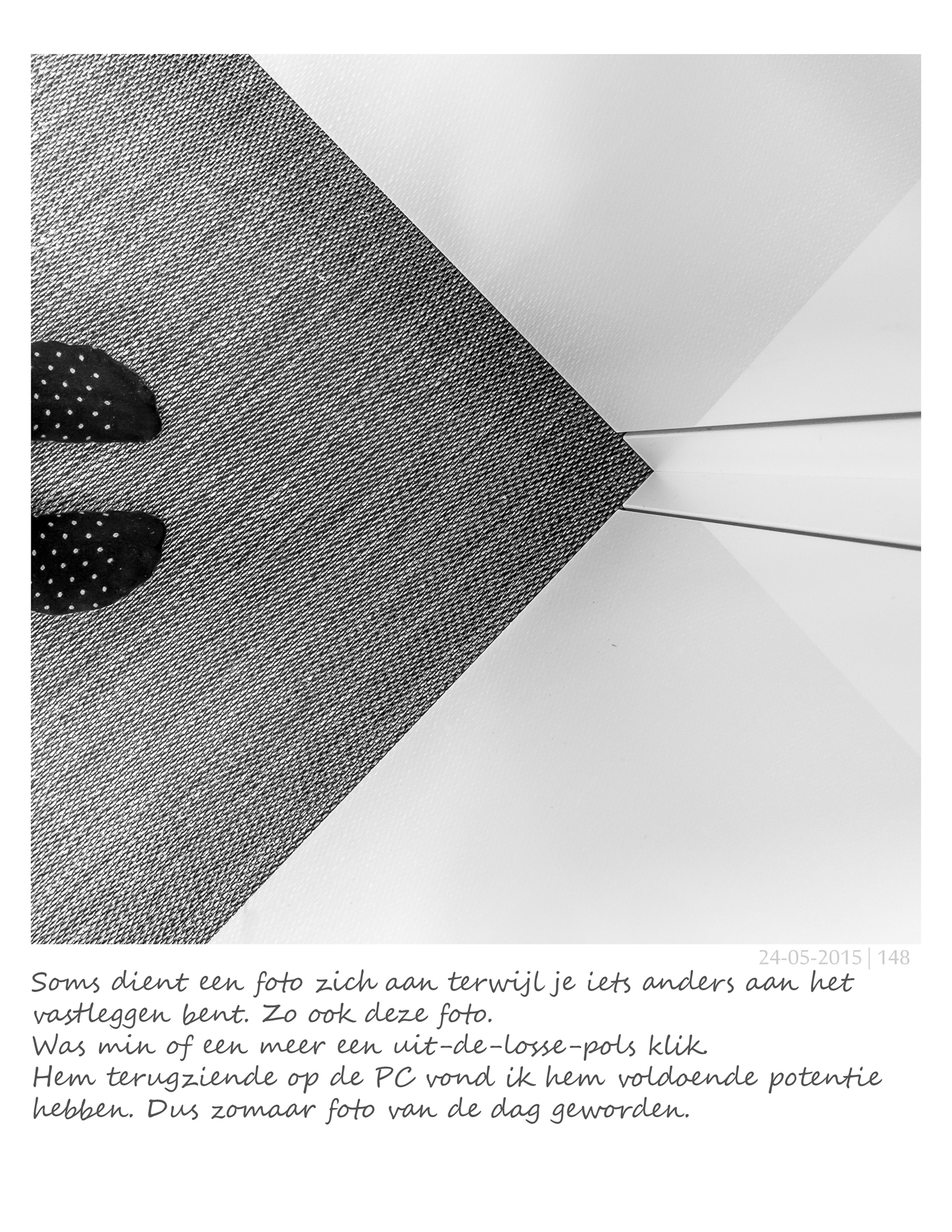 Ik heb ervaren dat onderwerpen zich vaak vanzelf aandienen, soms echt gezocht moesten worden. En dat er in mijn directe omgeving vaak genoeg te vinden was. Zelfs in mijn eigen huis. Een detailfoto kan van van alles zijn immers.