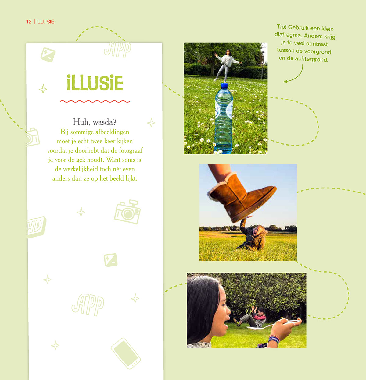 In het boek ‘Zeg eens cheese, de beste fotografietips voor kinderen’ wordt op een eenvoudige manier uitgelegd want composities zijn. Je ontdekt hoe leuk fotografie is, maar vooral hoe mooi de wereld om je heen eigenlijk is. Met handige tips, leuke opdrachten en geheime trucjes kan jezelf aan de slag. Voor wie zich helemaal kan vinden in het uitleven en experimenteren met een fototoestel, is ‘Fotogenie, tips voor magische fotografie’ een echte aanrader. Je gaat op avontuur in je eigen creativiteit. Je ontdekt de magie van de natuur en de magie van je eigen verbeelding. Je leert het wonderbaarlijke zien in alledaagse dingen. Je zet je eigen wereld op z’n kop, je maakt je eigen cameralenzen, je ontdekt niet alleen hoe mooi muziek klinkt maar ook hoe mooi muziek eruitziet, je speelt met een glazenbol en nog veel meer.
