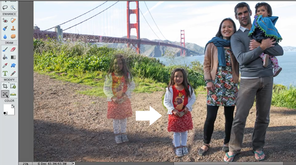 Vermeldenswaard is daarbij Content Aware Move (Inhoud behouden verplaatsen) waarmee onderdelen van een foto verplaatst kunnen worden, waarbij het vrijkomende ‘gat’ netjes wordt opgevuld met de omliggende structuur. Iemand die echter een beetje bekend is met lagen en het kloongereedschap kan dit ‘toverkunstje’ ook zelf en waarschijnlijk met beter resultaat.