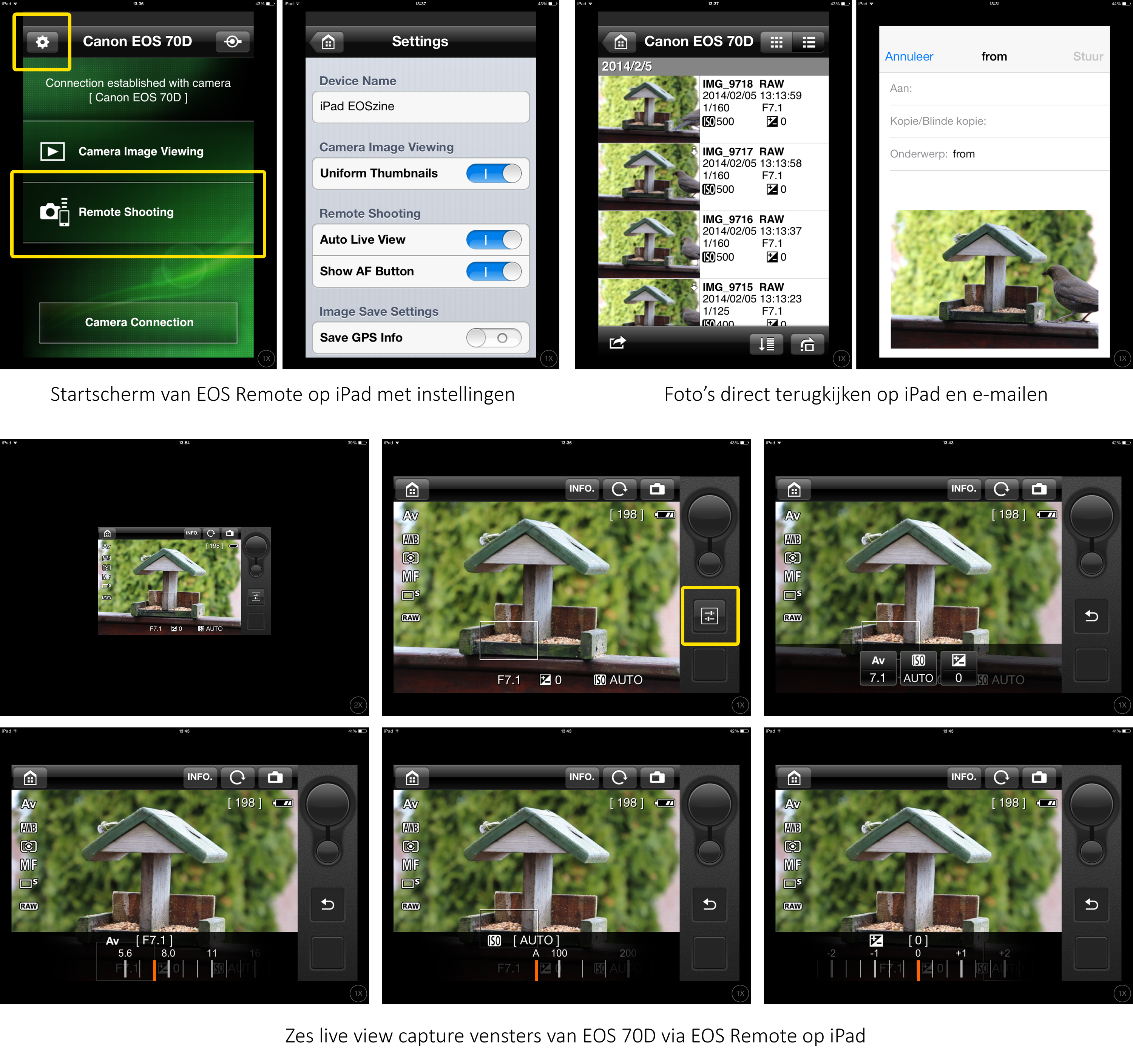 In een reeks artikelen gaan we dieper in op enkele bijzondere kwaliteiten van de EOS 70D, die bij andere, 'gewone' reviews slechts genoemd worden. Zo hebben we op EOSzine al Meervoudige belichting, Video zoom en Wifi-instellingen behandeld. Deze keer gaan we kijken hoe we in de praktijk de wifi van deze camera kunnen gebruiken om draadloos met behulp van een tablet en de app EOS Remote een vogeltje van afstand te 'schieten'.
