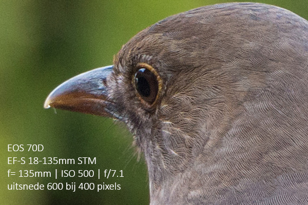 Dankzij de 'wifi capture' van onze EOS 70D met een iPad en EOS Remote hebben we redelijk comfortabel vanuit onze luie stoel in de woonkamer draadloos en op afstand een paar geslaagde foto's kunnen maken van onze huismerel. Met deze optie kun je dus foto's maken die anders niet mogelijk zijn of een stuk moeilijker. Er zijn nog wel een paar aandachtspunten en wat ons betreft zou het beeld op het lcd-scherm van de camera tijdens de sessie 'op zwart' mogen (langere accu-duur) en zou de verversing van het live-view beeld op de tablet of smartphone sneller mogen zijn.
