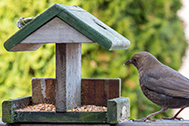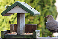 Tijdens het wachten hebben we - om de 'verveling te doden' - het diafragma iets vergroot naar f/7.1 en een paar testopnamen gemaakt. Dat laatste was misschien niet verstandig, want het geluid dat de camera dan maakt heeft de komst van onze stamgasten waarschijnlijk vertraagd. Toch heeft gedurende de twee uur dat we in de lucht waren één keer een dappere merel alle moed verzameld om even een paar broodkruimels te komen nuttigen. We hadden net de tijd voor vier foto's voordat de vogel letterlijk alweer gevlogen was.