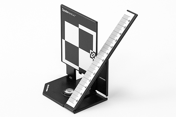 Hoewel een liniaal dienst kan doen voor dit karweitje, is de Spyder Lenscal van Datacolor een beter kalibreer-accessoire. Je stelt daarbij altijd scherp op een groot vlak en de afwijking lees je af op een liniaal dat onder 45° ernaast staat. De schaalverdeling is aangepast op de schuine stand en loopt van -6 tot +6 cm ten opzichte van het scherpstelvlak.