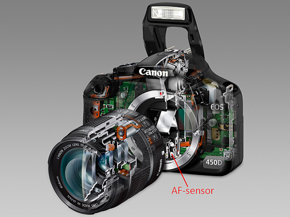 Een van de zaken die we eigenlijk gedachteloos gebruiken op een camera is de autofocus (AF), het automatisch scherpstellen op het hoofdonderwerp. Er zijn verschillende principes om de scherpstelling automatisch uit te laten voeren, maar de meest gangbare is momenteel met behulp van fasedetectie. Dit gebeurt in een EOS-camera met een aparte AF-sensor en verloopt in bijna alle gevallen snel en accuraat. Alleen in het halfduister en bij weinig detail in het onderwerp (effen oppervlak) kan het even duren eer dat de autofocus houvast gevonden heeft. Ook niet-transparante obstakels kunnen problemen opleveren voor de autofocus.