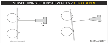 Vaak wordt het middelste - gevoeligste - scherpstelpunt gebruikt om automatisch mee scherp te stellen. Om te voorkomen dat dan het hoofdonderwerp altijd centraal in het kader staat, wordt na het scherpstellen de camera iets gedraaid met de ontspanner half ingedrukt. Deze techniek wordt herkaderen genoemd en werkt prima. Wanneer je echter met een langer brandpunt werkt en op kortere afstanden, dan verandert de afstand tussen camera en scherpstelpunt, terwijl de oorspronkelijke scherpstelafstand gelijk blijft. Het scheelt niet veel, maar als de scherptediepte klein is, kan dit millimeterwerk van belang zijn. In het genoemde geval is het dus raadzaam om niet te herkaderen met het middelste scherpstelpunt, maar om een ander scherpstelpunt in de zoeker te kiezen dat links of rechts van het midden is gelegen.