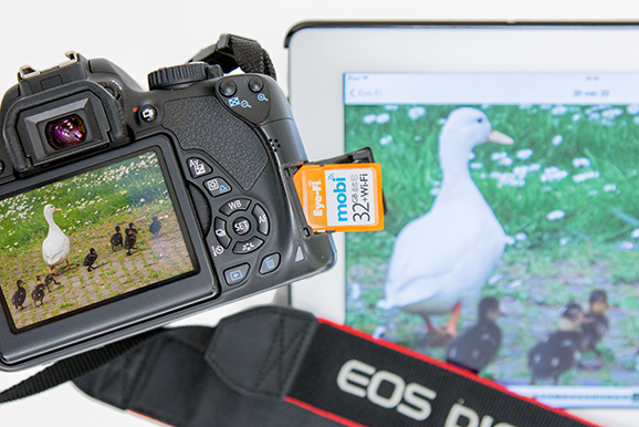 Een SD-geheugenkaartje met een ingebouwde wifi-hotspot. Dat is een Eye-Fi Mobi. En op het moment dat je via dit bijzondere SD-kaartje je camera verbonden hebt met je telefoon of tablet (iOS/Android), worden alle JPEG-foto’s die je dan maakt, draadloos overgestuurd én opgeslagen op je smartphone of tablet. Van daar uit kun je ze - zonder tussenkomst van een computer - mailen, Twitteren of Facebooken. Leuk, toch?
