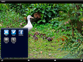 De app van Eye-Fi laat de transfer van foto’s zien en toont ze of als thumbnail of beeldvullend. Je kunt inzoomen en je kunt de foto’s delen via mail en de social media. Wil je in deze app foto’s verwijderen, dan kan dat niet en moet je dat via Galerie/Filmrol doen. Dit wordt dus niet gesynct met je camera en foto’s blijven dus onverstoord op de SD-opslag van de Eye-Fi Mobi-kaart staan. In ons geval met 32 GB ruimte.