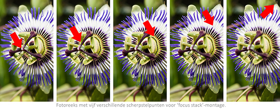 Een belangrijk karakteristiek van een foto om de aandacht van de kijker te sturen is de scherptediepte van het onderwerp. Zeker als close-ups of macro’s worden gemaakt. Om toch het hele onderwerp van voor tot achter scherp op de foto te krijgen is het mogelijk om een reeks foto’s met een kleine scherptediepte, maar verschillend scherpstelpunt, te ‘stapelen’, waarbij alleen de scherpe delen behouden blijven. Dit principe wordt Focus stacking genoemd.