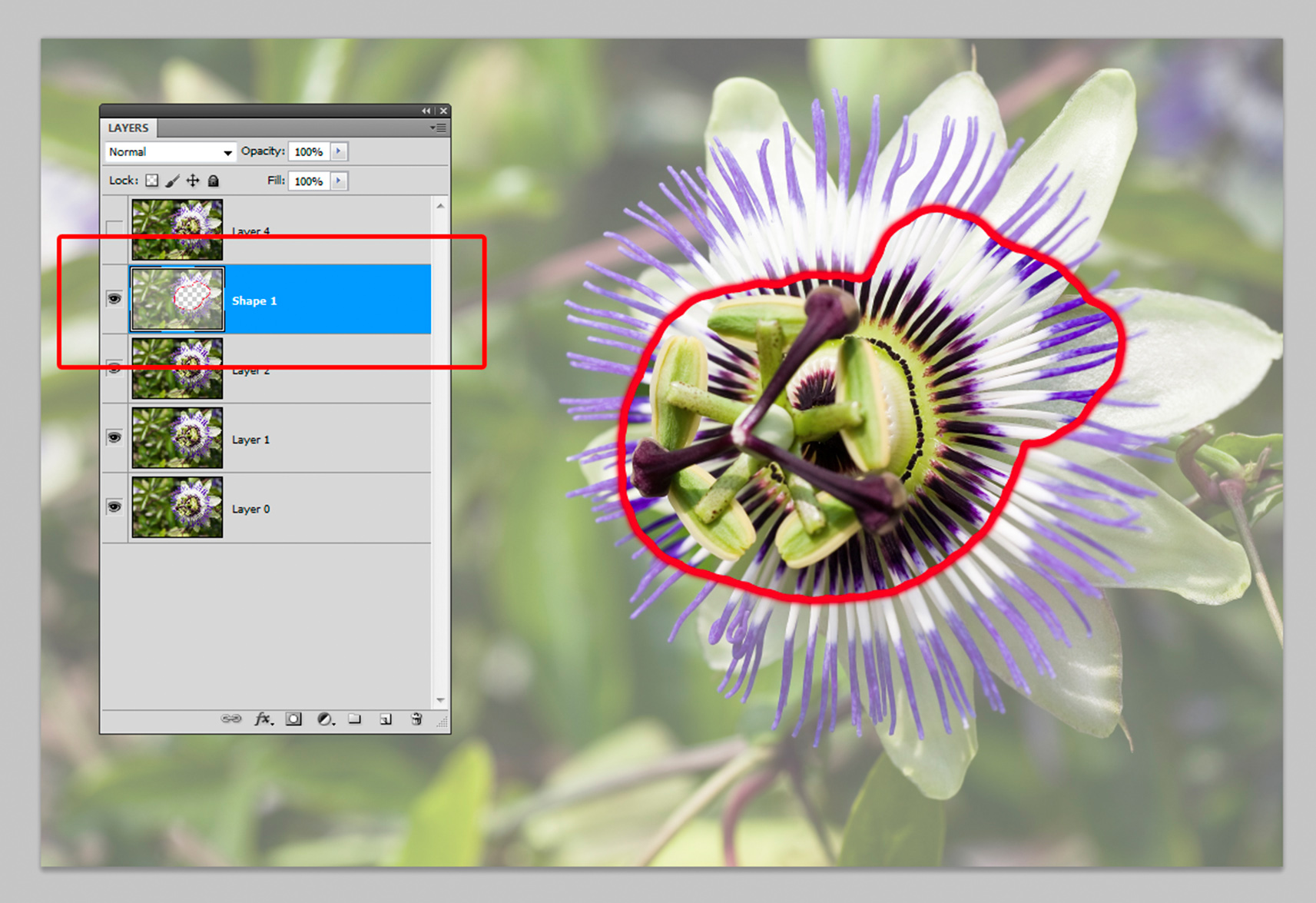 De werkwijze in een fotobewerkingsprogramma is theoretisch eenvoudig, maar praktisch een nauwkeurig werkje. Open de foto waarbij het achterste scherpstelpunt is gekozen. Open nu ook de andere foto’s en kopieer deze in hun geheel in de juiste volgorde als nieuwe laag in de eerst geopende foto, zodat ze exact op elkaar liggen. In het paneel Lagen kunt u zien dat de foto’s als lagen boven elkaar liggen. Tevens kunt u de volgorde eventueel wijzigen door de lagen in dit paneel te verslepen. Kies het Gum-gereedschap en vervolgens kan begonnen worden om onscherpe delen per laag weg te poetsen. Begin met de eerste laag boven de achtergrond, waarbij u de lagen erboven verbergt. Werk zo naar boven toe. Het zal opvallen dat ondanks alle voorbereidingen de grootte van het hoofdonderwerp verschilt. Dit fenomeen treedt vooral bij close-ups en macro’s onvermijdelijk op als het scherpstelpunt wordt verschoven. De lagen moeten dus iets vergroot of verkleind (schalen) worden om exact passend te zijn. Zijn alle lagen met het Gumgreedschap behandeld en zijn ook alle lagen juist geschaald, dan kunnen ze samengevoegd worden met de achtergrond tot één foto en opgeslagen als JPEG.
