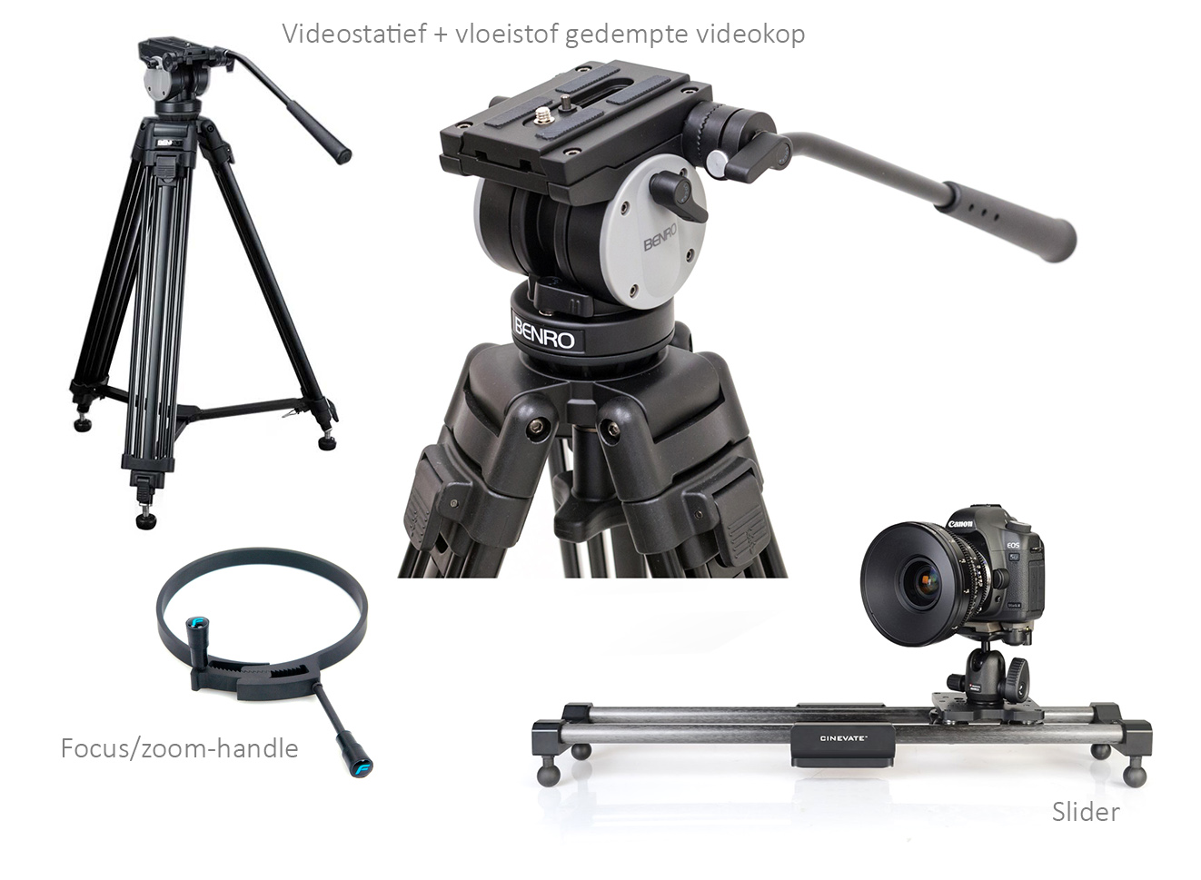 Het grote probleem van bewegend beeld is dat het niet bewogen mag zijn. Daarmee bedoelen we dat alle beweging vloeiend moet zijn en camerabeweging óf volledig afwezig moet zijn óf heel geleidelijk moet verlopen. Als je geen bewuste camerabeweging in je video gebruikt, dan kan je volstaan met een gewoon fotostatief. Maak je echter shots waarbij de camera van links naar rechts of boven naar onder beweegt (pannen), dan lukt dit niet vloeiend met een gewone statiefkop. Je hebt dan een gedempte videokop nodig. Alle bewegingen van de camera worden dan veel soepeler en omdat je een lange hendel hebt, kun je ook veel nauwkeuriger kaderen en volgen. Wij hebben een exemplaar van ongeveer 200 euro aangeschaft.