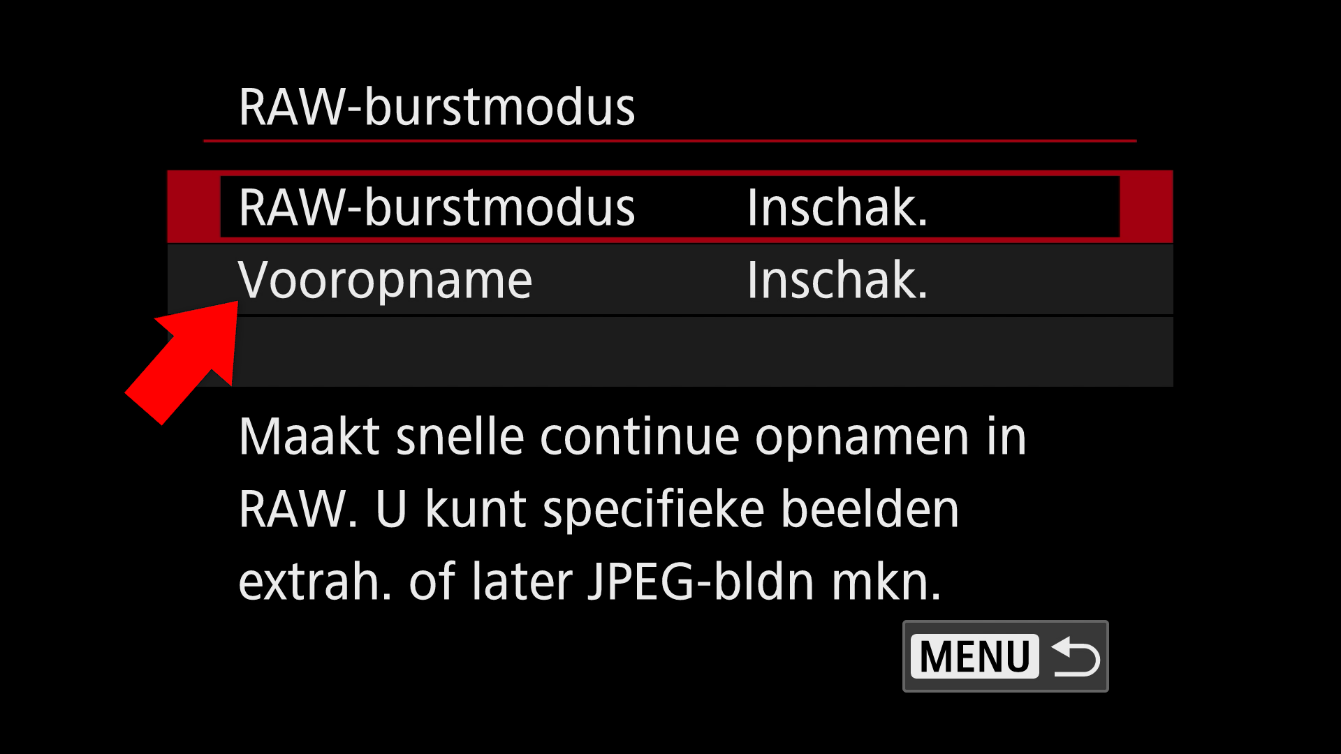 RAW-burst met Vooropname