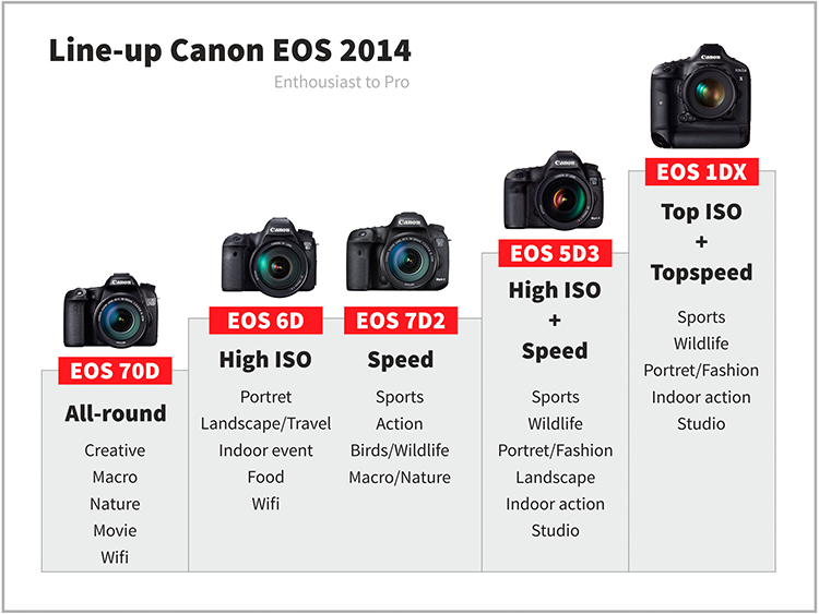Wil je specificaties van de EOS 70D, EOS 7D, EOS 7D mark II en de EOS 5D mark III naast elkaar zien, kijk dan op dpReview (klik hier).