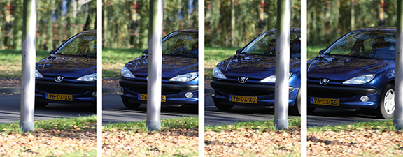 | Ondanks obstakels blijft de autofocus de nummerplaat volgen. |
