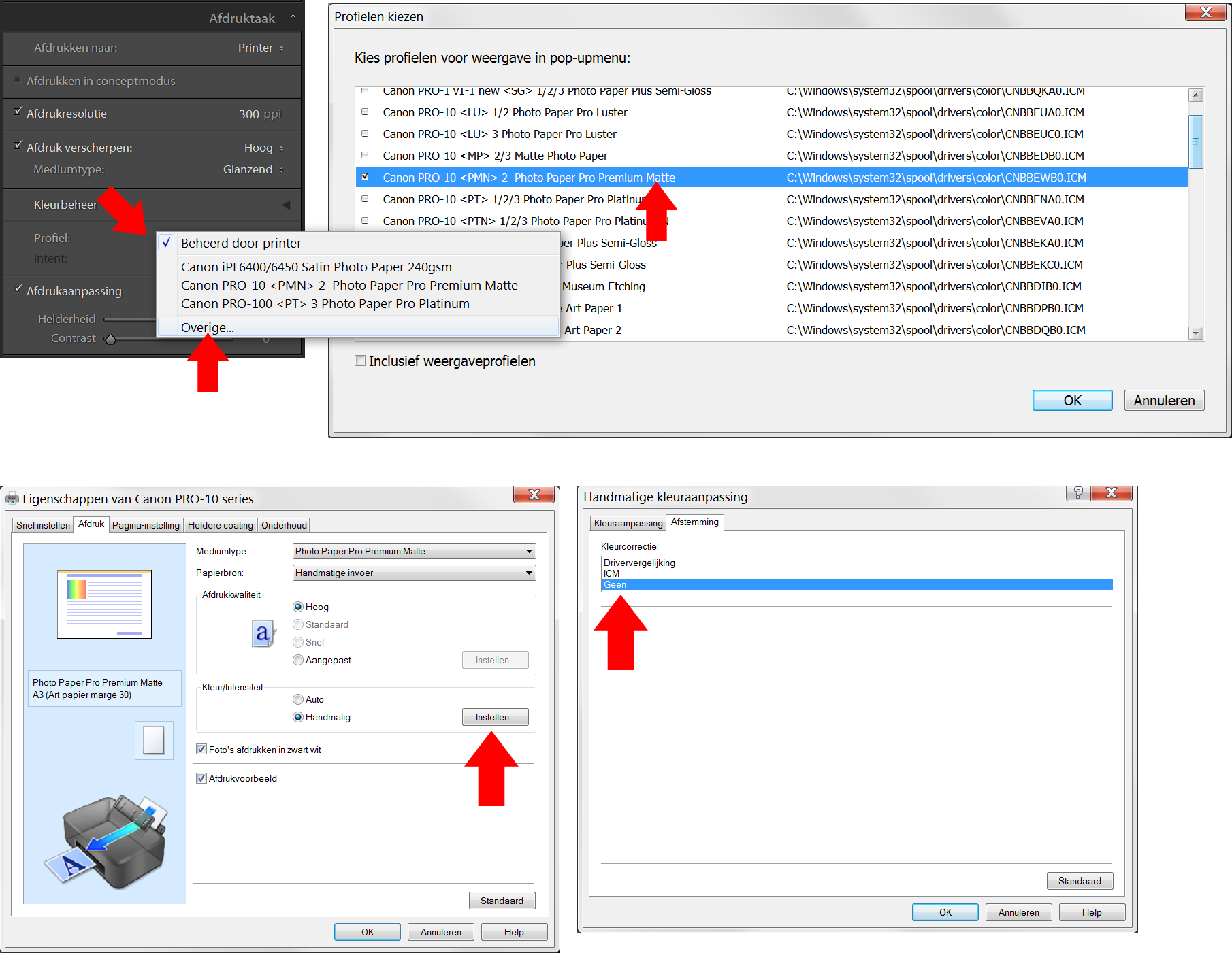 Instellingen afdrukken vanuit LR met profiel