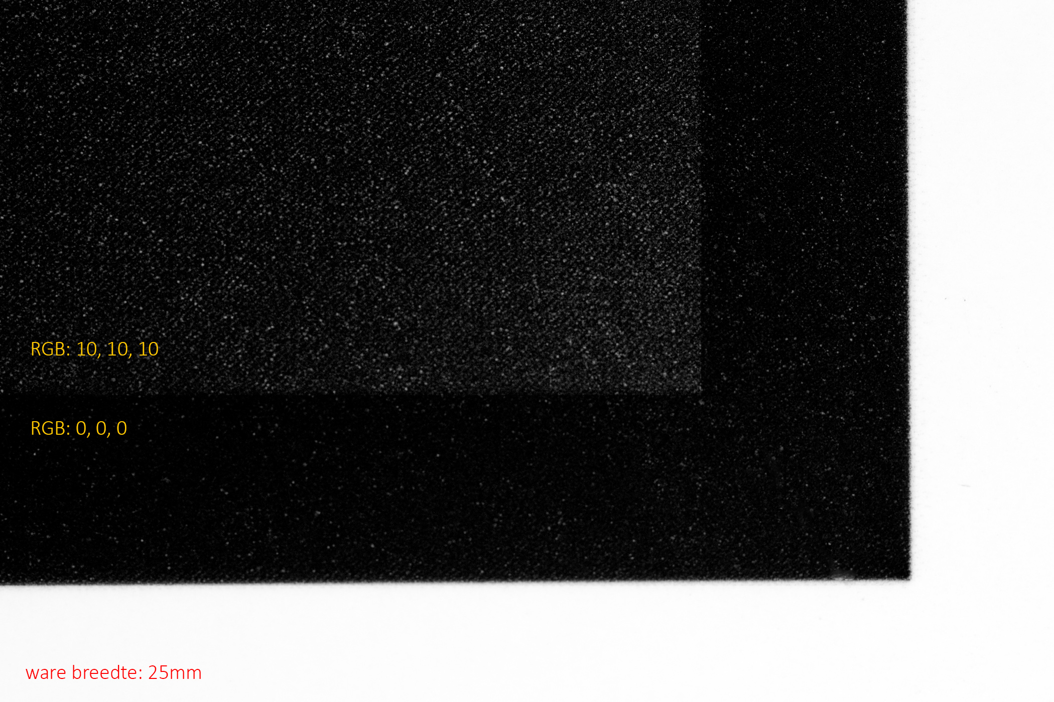 Als je op enigerlei manier een foto zwart-wit gemaakt hebt en je wilt hem (laten) afdrukken, zorg dan dat het een RGB-bestand is voor de beste resultaten. Dus geen Grijswaarden-modus, maar een echte RGB, waarbij de waarden van Rood, Groen en Blauw aan elkaar gelijk zijn. De keuze sRGB of AdobeRGB is bij zwart-witprints niet relevant.