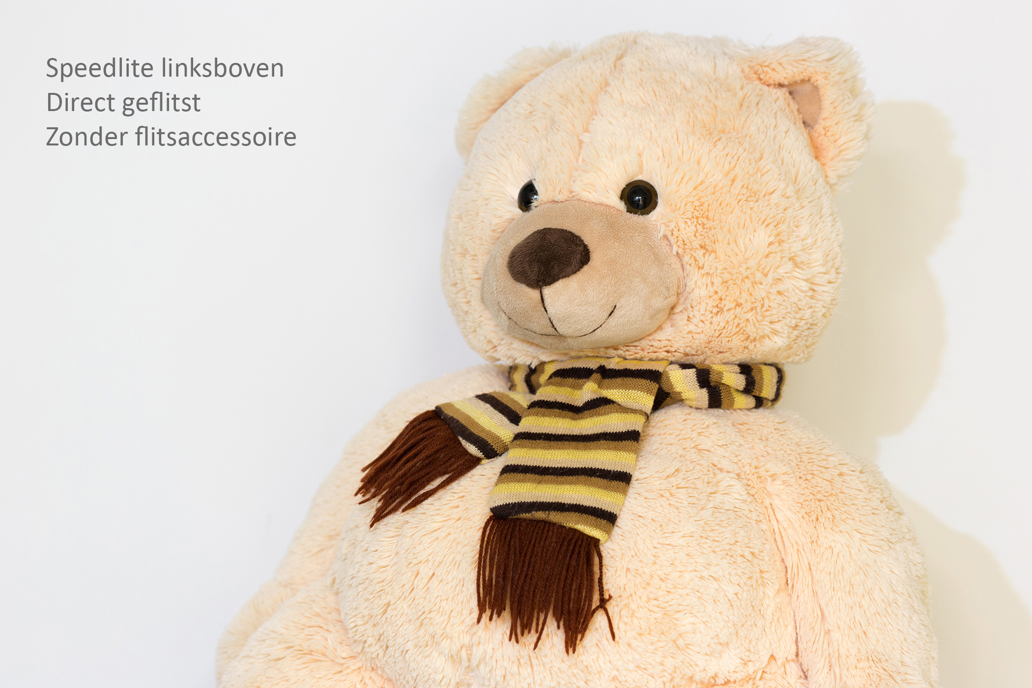 Met een zekere voorspelbaarheid komen tot fraaie flitsresultaten is soms niet eenvoudig. Staan camera en opzetflitser via E-TTL II met elkaar in verbinding, dan is de kans op een goede flitsfoto in de P-, A-, T- of M-stand al behoorlijk groot, maar met behulp van accessoires kan het flitslicht ook in richting en vorm worden gestuurd voor nog betere resultaten. Een belangrijk aspect daarbij is bovendien dat de flitser niet meer op de camera staat en zo het onderwerp altijd frontaal belicht, maar van de camera wordt afgehaald (kabel of draadloos), zodat het onderwerp van schuinboven wordt ingeflitst. Voordeel is dat het licht meer over het model strijkt en door de ontstane ‘schaduwen’ meer diepte krijgt. Frontaal flitslicht maakt een onderwerp heel ‘plat’. Nadeel van een flitser schuinboven is wel dat de slagschaduw meer zichtbaar wordt als het model vlak voor een muur staat. Hoewel indirect flitsen dit probleem gedeeltelijk oplost, komen hulpmiddelen als de LightSpere en de FlashBender dan toch nog heel erg goed van pas.