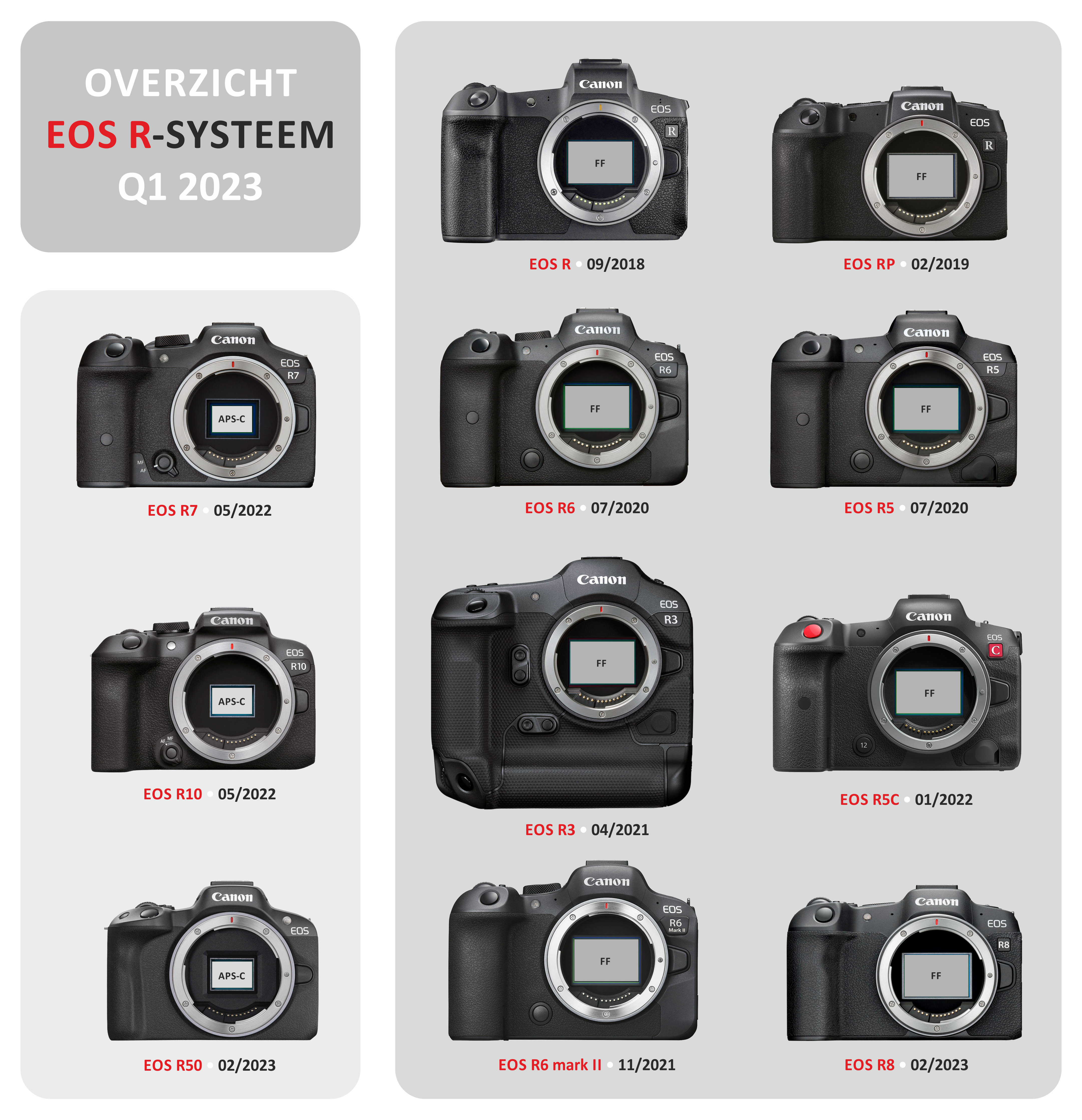 Met de komst van de EOS R8 (review) en EOS R50 (blog) medio februari 2023 is het totaal aantal modellen in het EOS R-systeem op 11 gekomen. Je krijgt dus steeds meer keuze als je op zoek bent naar een nieuwe spiegelloze systeemcamera van Canon. Dat is op zich goed nieuws, maar kan ook ‘keuzestress’ tot gevolg hebben. In dit artikel proberen we voor wat betreft de EOS R8 ‘de bomen en het bos’ te ontrafelen met welke full-frame camera je in het EOS R-systeem kunt stappen.