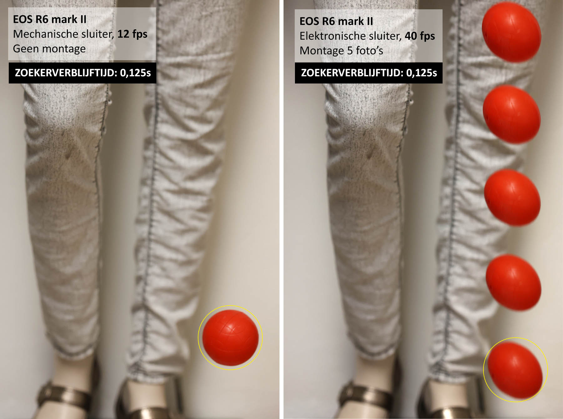 Neem een bal als voorbeeld. Als een voetbal op een tiental meter door het kader vliegt en je fotografeert met 70mm (diameter bal = 6% hoogte kader), dan moet de absolute snelheid van die bal heel hoog zijn wil je een ovaal zien. Pas als de bal veel dichterbij is, dan zou je een vervorming kunnen zien, maar die wordt dan grotendeels vervaagd door de bewegingsonscherpte die je ondanks bv. 1/1000s op die korte afstand krijgt. Zo’n vervaagde bal is niet storend en voegt zelfs snelheid aan de foto toe.