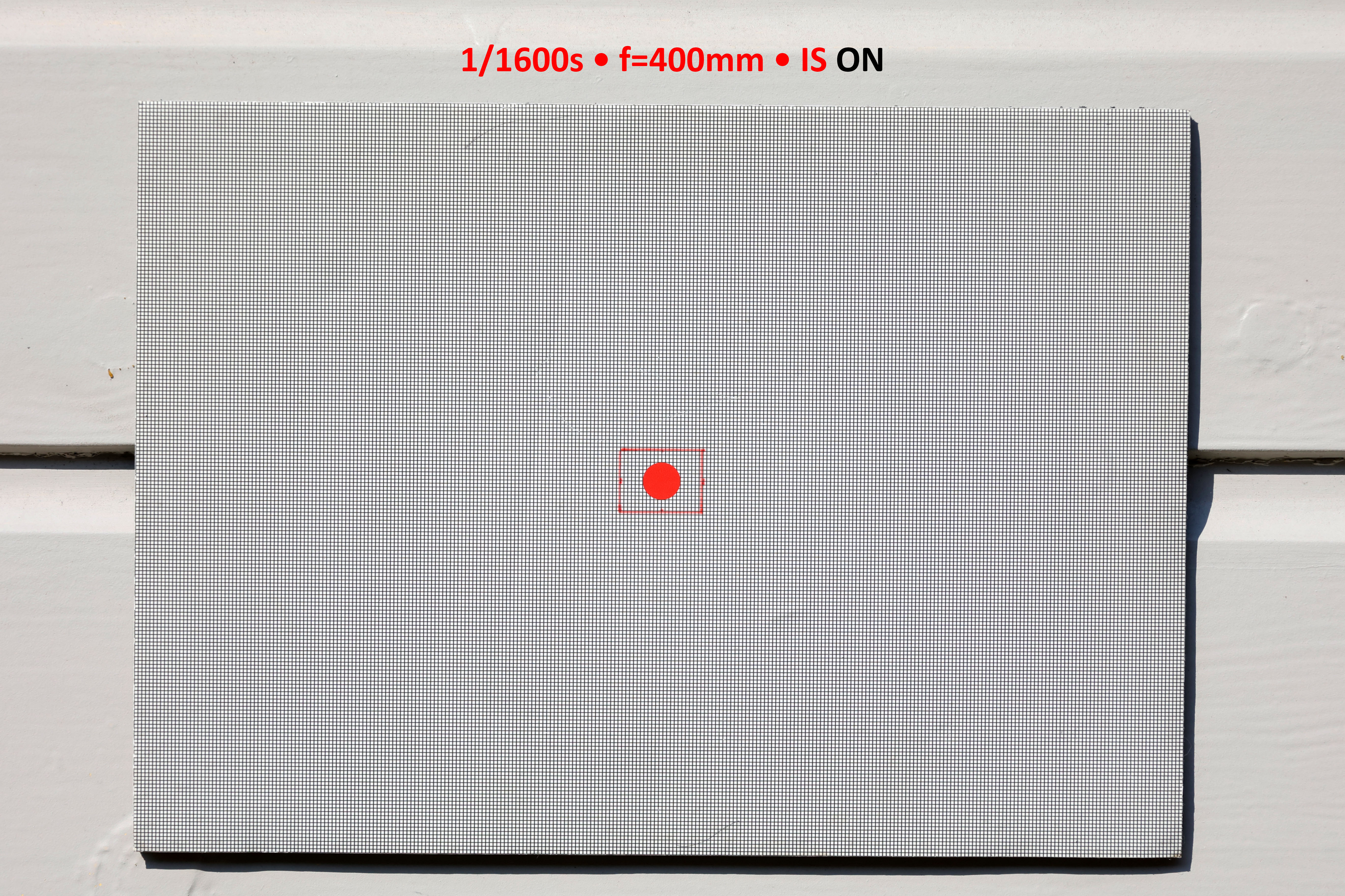 Onder: de scherpte van een enkele foto bij 1/1600s. Links zonder IS en rechts met IS.