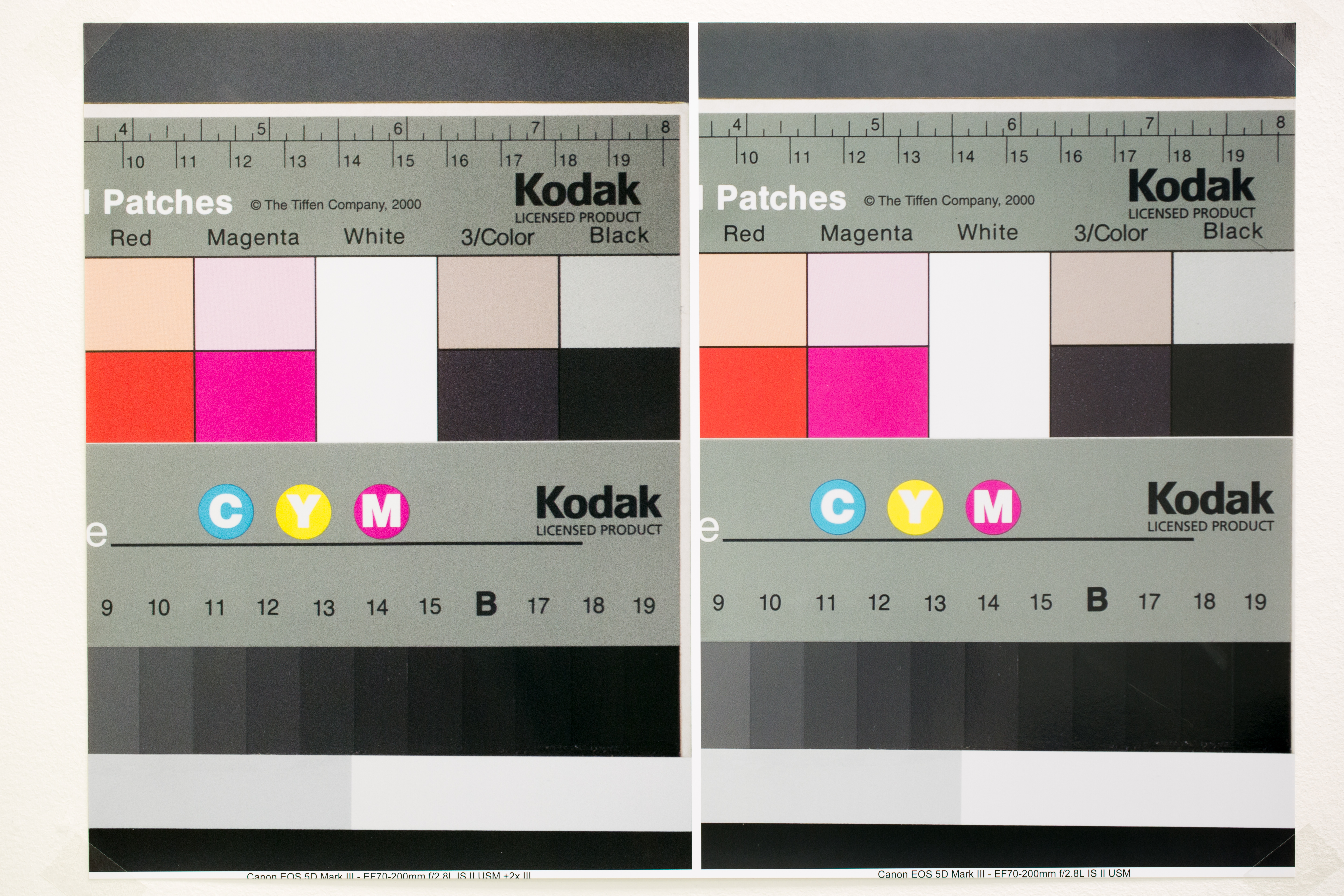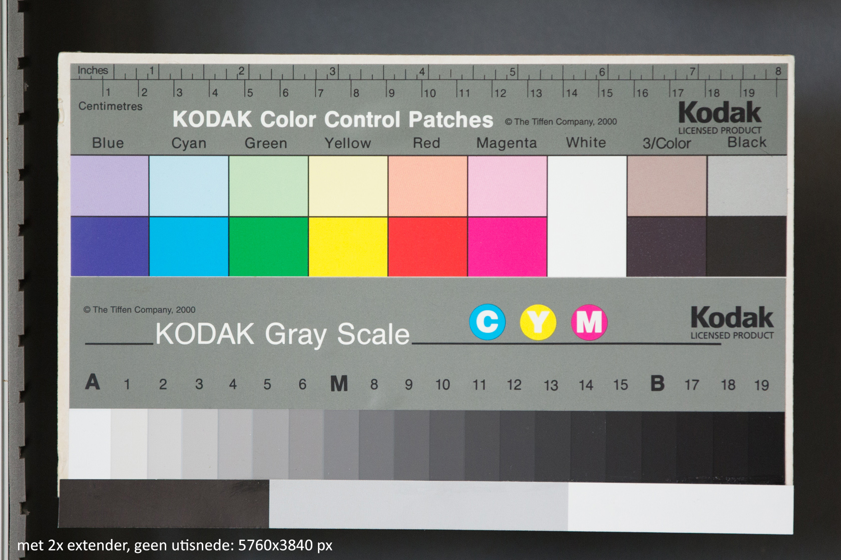 | Foto van print op grootte 45x30cm. Links volle resolutie met 2x extender. Rechts lores crop. |