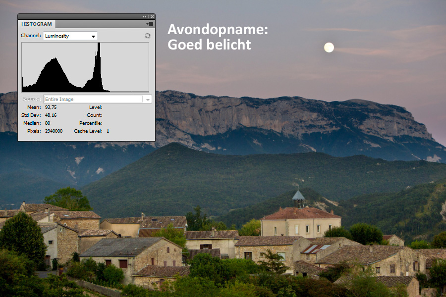 De vorm van de ‘bergetappe’ is dus een weergave van de helderheidsverdeling van een foto. De hoogte van de pieken kunnen we als fotograaf niet echt beïnvloeden, maar met over- of onderbelichten kunnen we wel het gehele verloop naar respectievelijk rechts of links verschuiven.