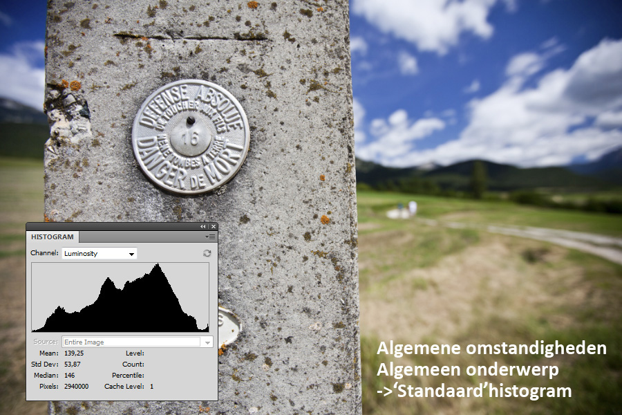 Zie je bij contrastrijke onderwerpen dat de berg links of rechts van de schaal afloopt, dan bevat de foto veel volledig zwart of geheel wit en zul je als fotograaf moeten beoordelen of dat belangrijke onderdelen van het onderwerp zijn. Is dat het geval, dan zul je respectievelijk moeten overbelichten of onderbelichten om weer detail in die zwarte of witte delen te krijgen.