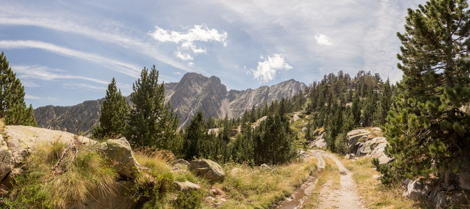 Met de komst net voor de zomer van Lightroom 6 werd ik getriggerd op het volgende. In LR6 is er nu de rechtstreekse mogelijkheid om meerdere foto’s samen te voegen tot een zogeheten panoramafoto. De uitdaging die ik zag was om de Aigüestortes in panoramafoto’s te vatten.