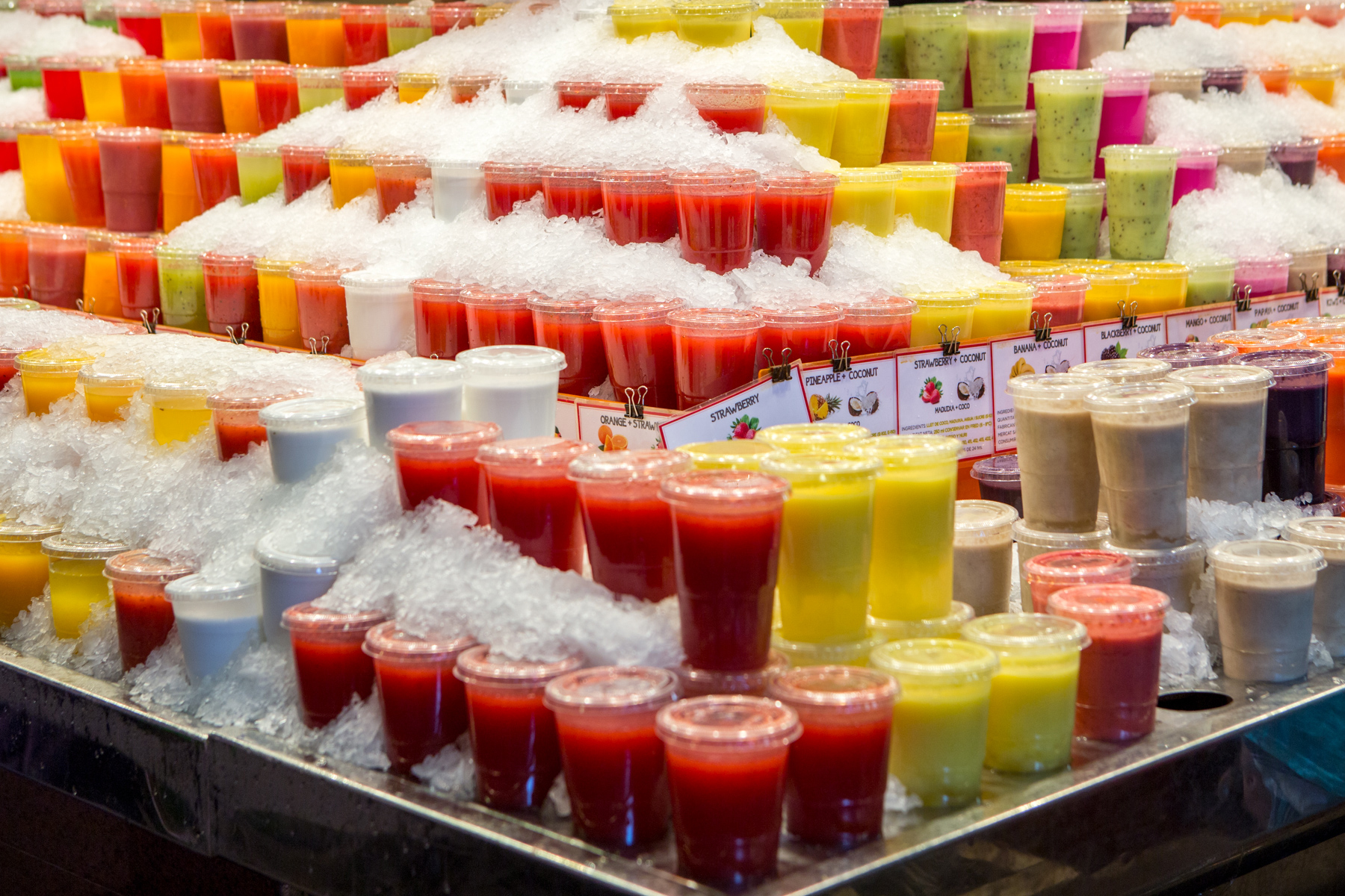 Ik heb ervoor gekozen de blik wat meer omhoog te richten, soms geduld te hebben en te wachten tot de mensen even niet langsliepen, of juist meer details te fotograferen, bijvoorbeeld op de overdekte markt La Boqueria aan de Ramblas. Je kijkt daar je ogen uit naar de kraampjes met opgestapelde groentes en fruit, de kleurrijke vruchtensappen, de enorme sortering vis om maar wat te noemen.