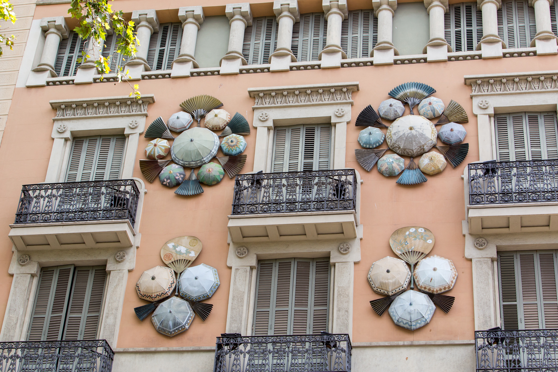 Als je door zo’n stad als Barcelona loopt met de blik wat meer omhoog, valt op dat veel gebouwen kunstzinnige ornamenten, beschilderingen of andere aardige versierselen hebben. Nou ben ik niet zo’n architectuurfotograaf, maar als je daar interesse in hebt, dan kun je hier je hart ophalen!