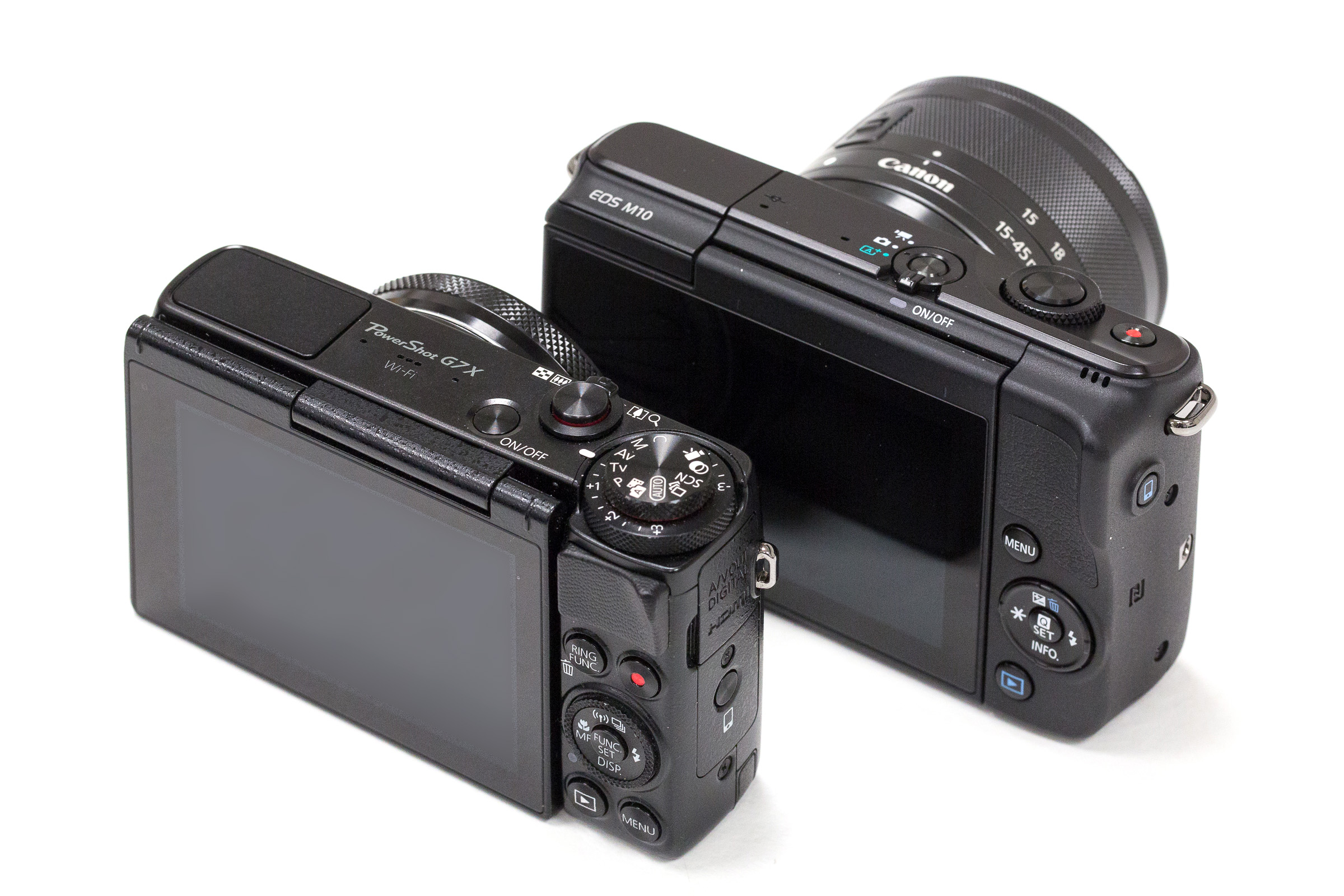 Wil je echt compact - want de ‘kleine’ EOS M10 past niet zomaar in een jaszak - dan zouden wij kiezen voor de PowerShot GX-serie. De PowerShot G7X heeft wel een iets kleinere sensor (1-inch), maar daarentegen een groter zoombereik (24-100mm), een twee stops lichtsterkere lens (f/1.8-f/2.8), een betere handligging en meer intuïtieve bediening. Deze jaszak all-in-one camera (met RAW, volledig stille werking en prima full-HD video) kost 500 euro en is daarmee net zo duur als de EOS M10 met een EF-M 15-45mm. Omdat de lens van de G7X zo lichtsterk is, kun je ook bij weinig licht met veel lagere ISO’s werken (minder ruis) en met kleinere scherptedieptes werken.