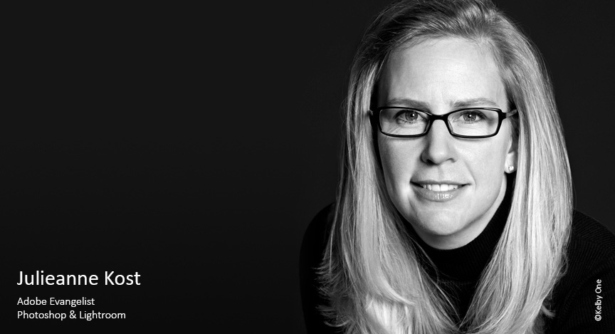 Toch is er altijd ‘baas boven baas’ en heeft 'elke leraar een leraar', waarbij je dan misschien meteen aan Scott Kelby denkt. Of Terry White. Of Martin Evening. Of Deke McClelland. Toch mogen we in dit rijtje één naam niet vergeten en dat is die van Julieanne Kost. Misschien niet zo uitbundig als de genoemde heren, maar inhoudelijk ijzersterk en vooral een heel aardige vrouw. Maak kennis met deze ‘evangeliste’ en ga haar volgen, zodat je elke dag iets nieuw en nuttig leert met Lightroom of Photoshop.