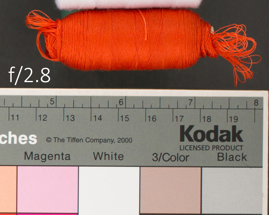 Behalve lensontwerp heeft ook de keuze van het diafragma invloed op de beeldscherpte van een lens. Bij het maximale diafragma is een lens vaak net iets minder scherp dan bij één of twee stopjes kleiner. Dat is zelfs bij een lens als de EF 100mm 2.8L IS op 100% te zien (f/2.8 vs. f/5.6).