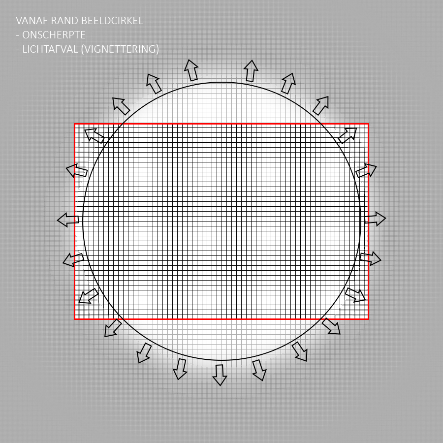 Het centrum van een lens genereert het scherpste beeld. Richting de rand van de beeldcirkel wordt die scherpte minder en omdat in een rechthoekig kader de hoeken het verste van het middelpunt liggen, is daar de onscherpte het grootst en spreken we van hoekonscherpte. Bij nagenoeg elke lens is die aanwezig. Ze is echter vaak niet storend, omdat ze meestal buiten het onderwerpgebied van de foto valt. Is een hoge hoekscherpte toch relevant, dan moet een kleiner diafragma gekozen worden. Bij onze EF 24-105mm 4L IS zal de hoekonscherpte bij f/8 minder zijn dan bij f/4.