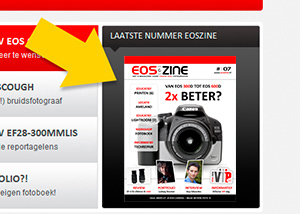 Dus ben je op zoek naar het laatste nummer van EOSzine klik dan rechtsboven op de omslag in de zogeheten ‘brandbox’.