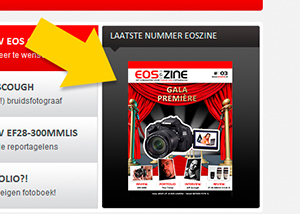 Dus ben je op zoek naar het laatste nummer van EOSzine klik dan rechtsboven op de omslag in de zogeheten ‘brandbox’.