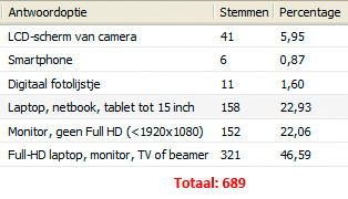 Opvallend is verder dat bijna 50% al een Full-HD apparaat heeft, waarop hij zijn foto's bekijkt en laat zien. En eerlijk gezegd is dat om van te watertanden.