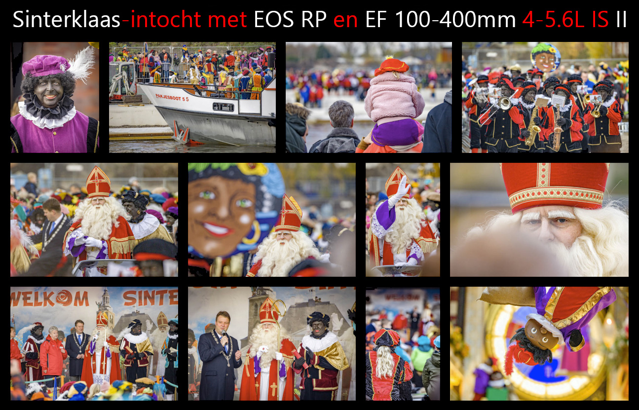 Deze keer bij de intocht van Sinterklaas heb ik echter vastbesloten de EOS RP om mijn schouder gehangen in combinatie met de EF 100-400mm f/4-5.6L IS II. Met deze lens hoef ik me bij een dergelijke druk evenement niet in de mensenmassa te begeven om toch close-ups te kunnen fotograferen en ook is er voor het EOS R-systeem nog geen native lens met dit brandpuntbereik.