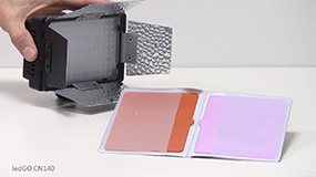 LedGo is een minder bekend merk en van deze fabrikant hebben we de CN-140 ter beschikking. Deze lamp is veel groter dan de Pocket Led’s van Manfrotto, maar is dan ook voorzien van 140 led-lampjes en geeft dus veel meer licht. De regeling is traploos. Het licht kan gebundeld worden met de ‘barn doors’ en er wordt een diffusor meegeleverd die eventueel vervangen kan worden door kleurenfilters van 3000 of 4000°K. In het veld is hij minder handzaam dan de Manfrotto’s en zijn toepassing ligt meer in de studio voor grotere voorwerpen. Hij is ook goed te gebruiken als videolamp.