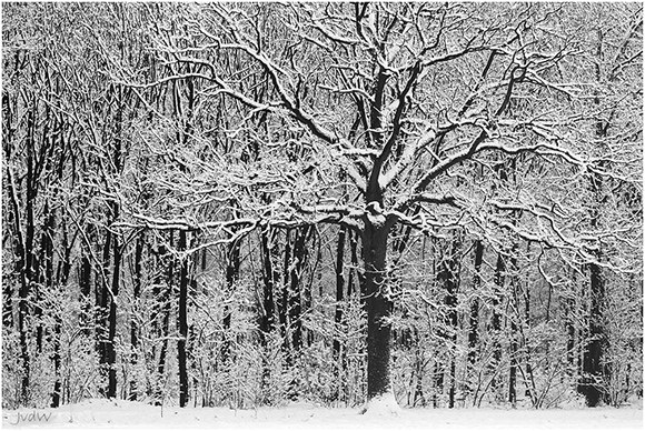 Ik heb dit jaar een een serie 'platte' besneeuwde bomenfoto's gemaakt met alleen een redelijk strak gekaderde boom erop waarbij de takken worden geaccentueerd door de sneeuw die erop ligt. Weinig dieptewerking of iets dergelijks, maar vooral grafisch en daarom ook een aantal zwart-wit gemaakt om het grafische effect te benadrukken! Het begint al een mooie serie te worden!