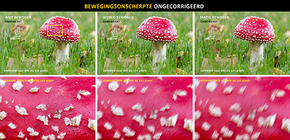 Wonderen bestaan niet en ook een bewogen foto zal nooit 100% de kwaliteit krijgen van een opname zonder bewegingsonscherpte. Dus let op de sluitertijd en gebruik een statief waar mogelijk.