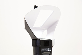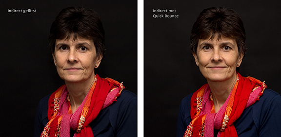 Bij sommige onderwerpen geeft direct flitslicht op het onderwerp ongewenste resultaten. Veel fotografen flitsen daarom indirect via het plafond. Door de flitskop omhoog te zetten gaat echter al het licht via het plafond en wordt het onderwerp niet meer frontaal belicht. Met een ‘Quick Bounce’ van LumiQuest kun je het onderwerp gelijktijdig zowel van voren als van boven belichten met je flitser en dat geeft een veel natuurlijker belichting. Ook kun je de flitskop draaien en zo met de Quick Bounce ook de richting van het flitslicht sturen. Leuk detail van de Quick Bounce is een ‘dakraampje’ dat je open of dicht kunt doen en je daarmee de verdeling van het flitslicht vooruit/naar boven regelt.