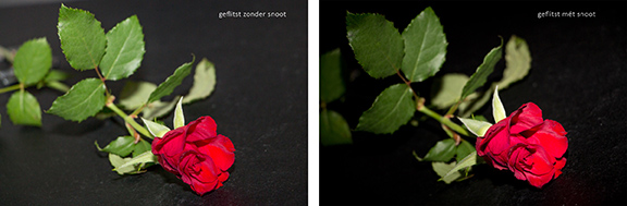 In veel gevallen willen we flitslicht zoveel mogelijk homogeen verdelen met softboxen en indirect flitsen. Wil je met flitslicht echter de nadrukleggen op een onderwerp, dan moet het licht juist meer geconcentreerd worden. Dat kun je doen met een honingraat, maar moet het flitslicht echt een spot worden, dan is een zogeheten ‘snoot’ een beter alternatief en LumiQuest heeft daar weer een heel compact model van in het assortiment. Wederom kan met klittenbad deze opvouwbare, trechtervormige snoot op een opzetflitser worden geplaatst. Handig is dat je met een verschuifbaar kokertje de bundeling van het licht kunt regelen. In zijn verste stand maakt het flitslicht echt een spotcirkel om het onderwerp.