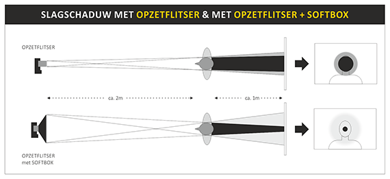 Omdat het flitslicht door de diverse accessoires wordt verstrooid, is het soms noodzakelijk om de flitskracht met 1 stop te verhogen.