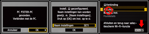 Als je dit verbindingstype eenmaal hebt opgezet en daarna geen andere soort verbinding maakt, dan zal de verbinding tussen de computer en de camera de volgende keer redelijk automatisch verlopen. Zet eerst de Wi-Fi op de camera weer aan en start EOS Utility. Even wachten tot ze elkaar gevonden hebben en je kunt Camera settings/Remote shooting starten om vanaf je werkplek de opnames met de EOS 70D te gaan maken.