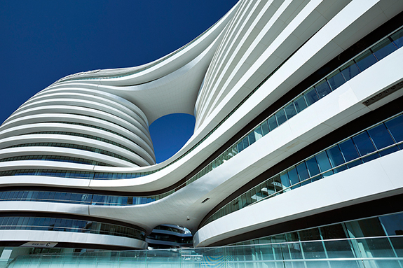 Het is SOHO China's eerste samenwerking met Zaha Hadid, een van 's-werelds top architectenbureaus gevestigd in London. Deze company met 400 werknemers is het levenswerk van de 63 jarige Irakese Zara Hadid. Haar creaties kenmerken zich door een intrigerend lijnenspel, ingeval van SOHO Galaxy welvend en vloeiend. Het is in mijn optiek een baanbrekende architectonische stijl die mogelijk wordt gemaakt door geavanceerde bouwtechnieken. Er is ondertussen een volgend SOHO Zaha Hadid project in Beijing in aanbouw maar daar kom ik later wellicht op terug.