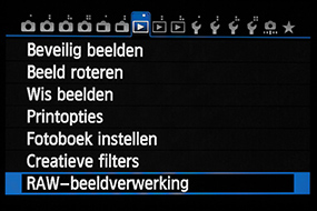 Let op RAW-beeldverwerking is niet beschikbaar voor mRAW en sRAW. Heb je de beeldverhouding aangepast bij RAW in Live View, dan krijgt ook de omgezette JPEG die verhouding. |