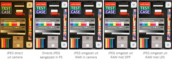 Het verschil tussen de in-camera RAW->JPEG en de RAW omgezet in DPP is klein. Het grote verschil is dat je in DPP natuurlijk veel meer controle hebt over belichting, witbalans, scherpte en ruisonderdrukking. Voor ons biedt Lightroom de meest optimale verwerking: snel, veel mogelijkheden en hoge kwaliteit. Wil je zelf de verschillen zien, download dan hier een zip met de vijf betreffende bestanden (klik hier. 32 MB).