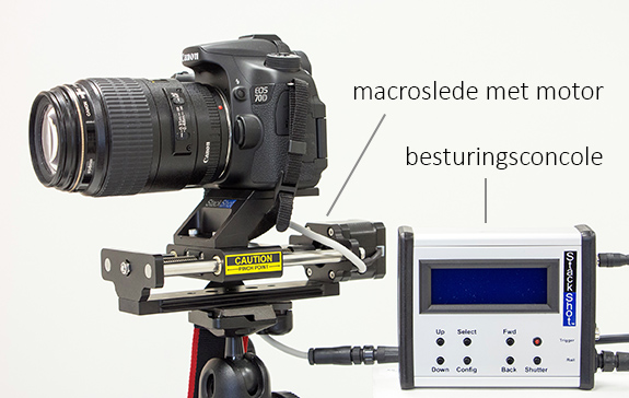 Het principe van de StackShot van Cognisus is eenvoudig. Verbind een macroslede met een motortje en stuur dit geheel aan op afstand via een bedieningsconsole. Dan hebben we meteen de belangrijkste onderdelen van de StackShot genoemd: een gemotoriseerde macroslede met kleine spoed en een besturingskastje. De verplaatsing en de verplaatsingsfrequentie kan worden ingesteld, waarna de beweging van de macroslede met daarop de camera handmatig of automatisch aan te sturen is. Omdat het console aan de ene kant verbonden kan zijn met een computer en aan de andere kant met een draadontspanner, kan het gehele proces volledig geautomatiseerd worden.